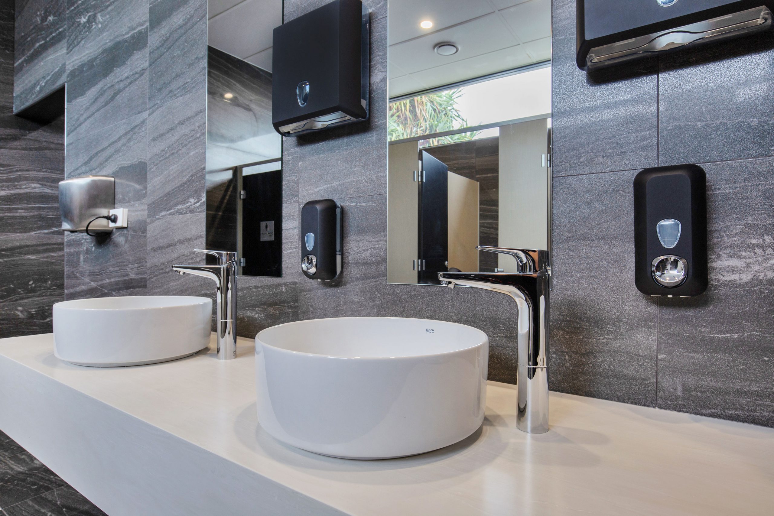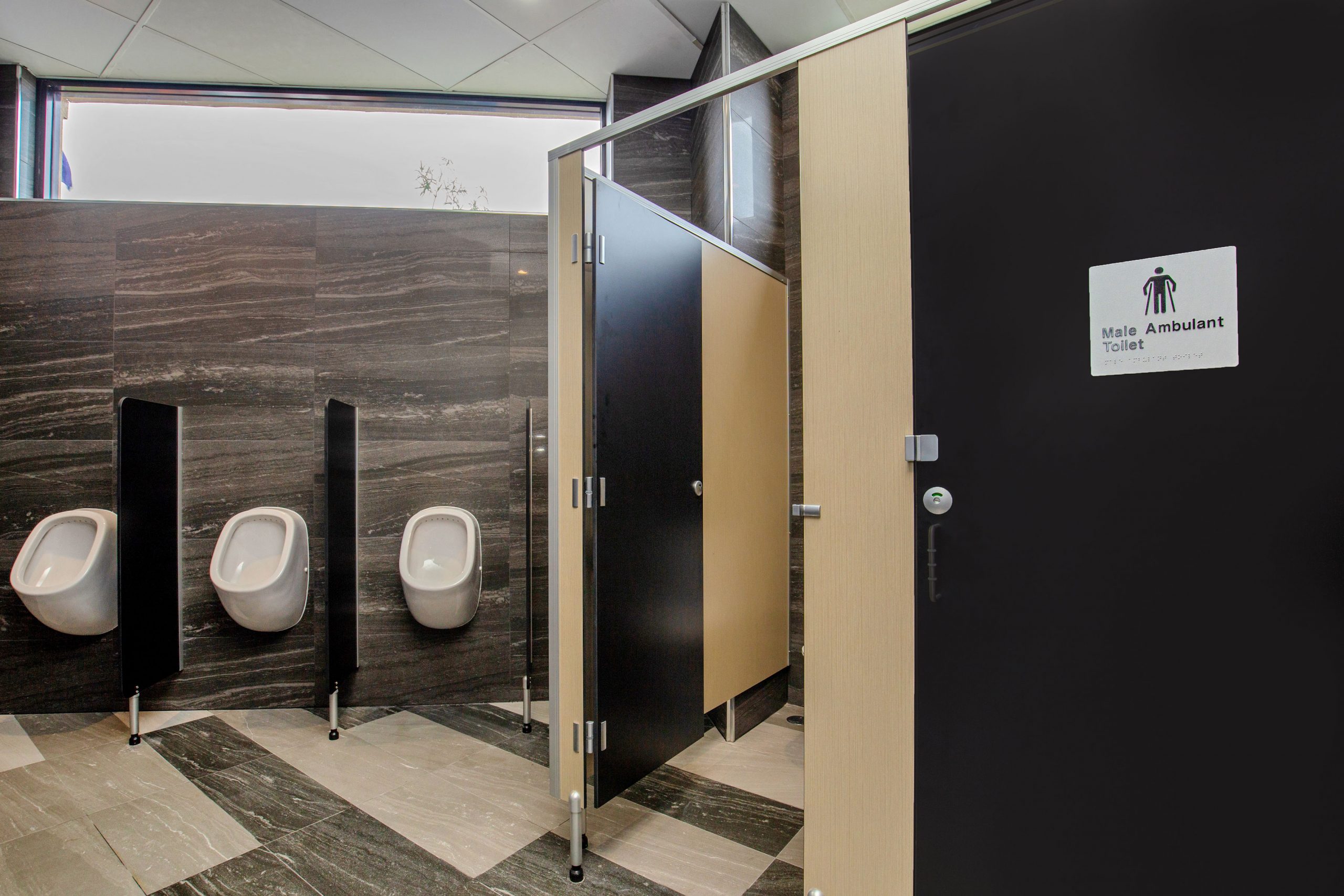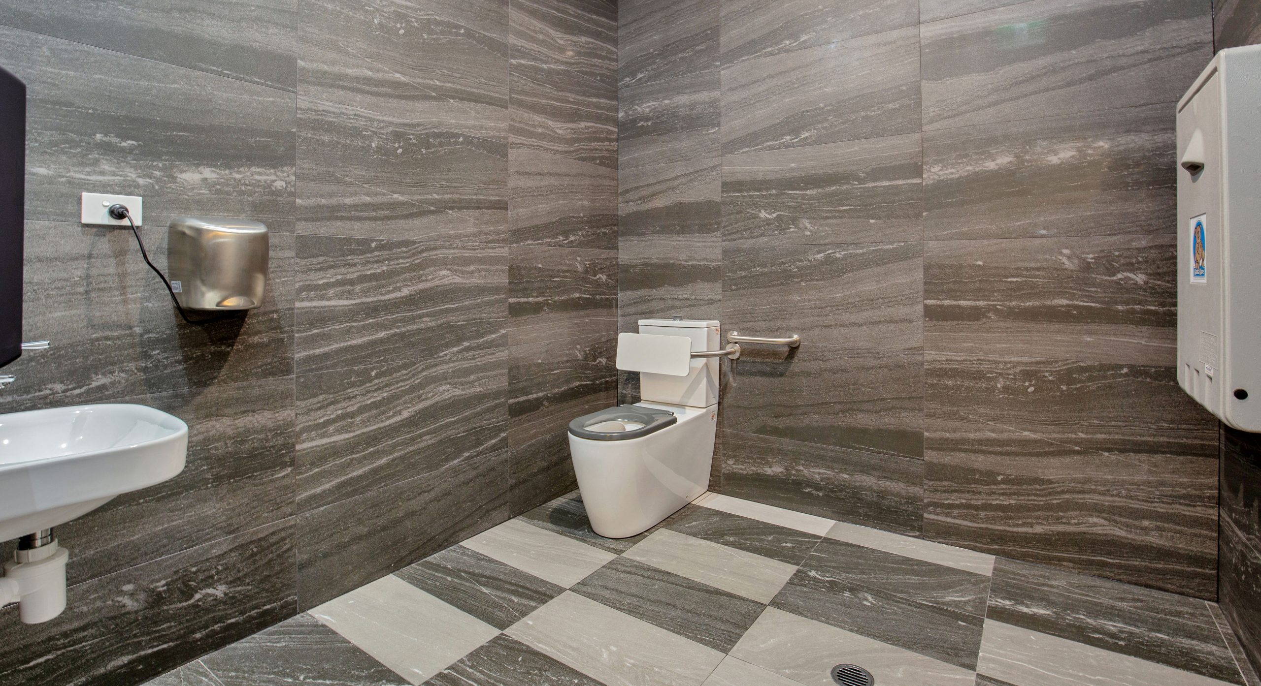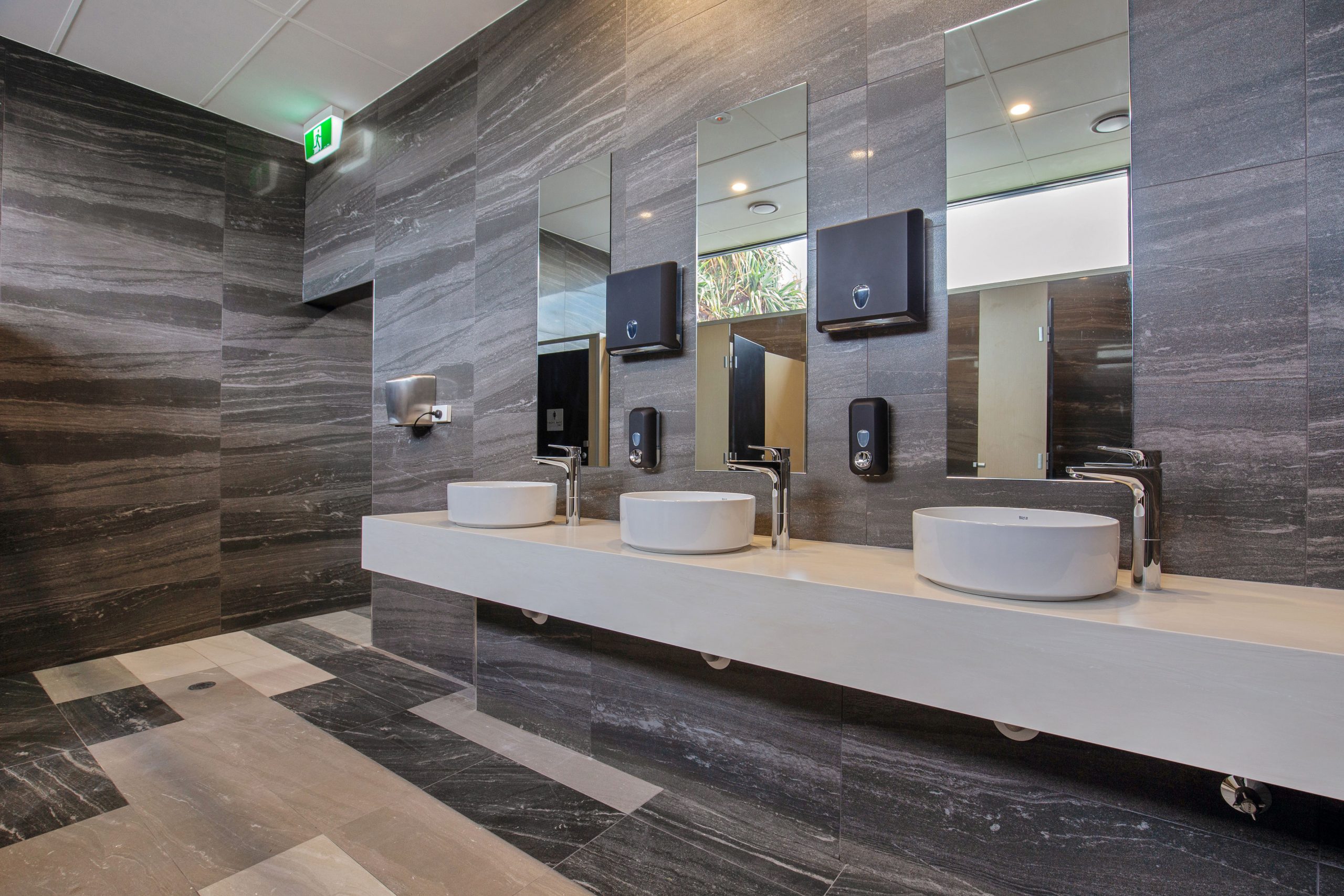 Greg Beh Constructions Pty Ltd was engaged to remove existing bathrooms at the Runaway Bay Junior Rugby Leagues Club and create a modern, edgy design with all new fixtures and accessories. The extent of works carried out, include a large separate disabled bathroom and baby change facilities. The female restroom have an abundance of space and consists of five individual toilet cubicles and three designer wash basins accompanied by a large mirror. The male restroom has been equipped with four privately divided urinals, two individual toilet cubicles and two wash basins to finish the overall appeal.